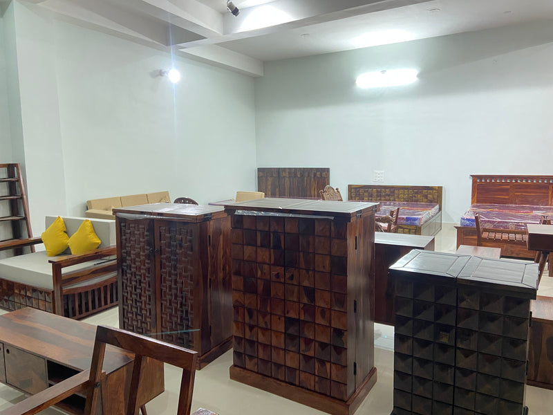 Elegant Wardrobes/Multipurpose Unit made in Solid Sheesham Wood with multiple storage system such as Doors Drawers Shelves. Available in wide designs and Three Finishes-NATURAL, WALNUT, TEAK.