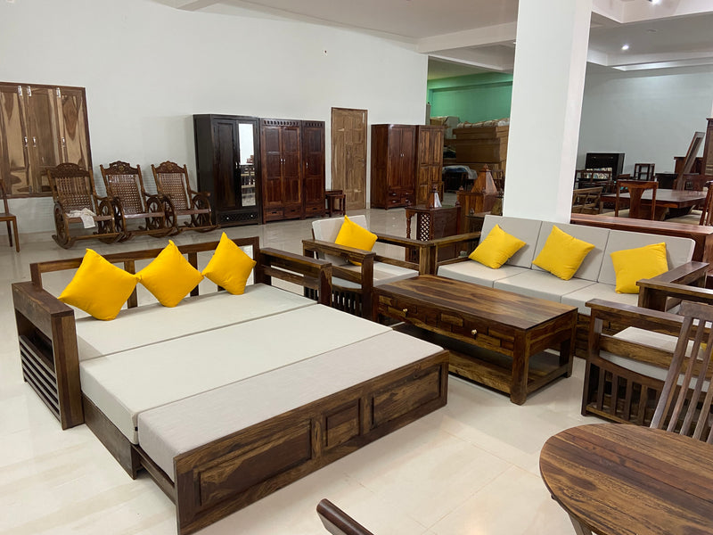 Italian Solid Sheesham Wood 3 Seater Sofa Cum Bed With Headboard and Mini Storage - 3 Year Warranty