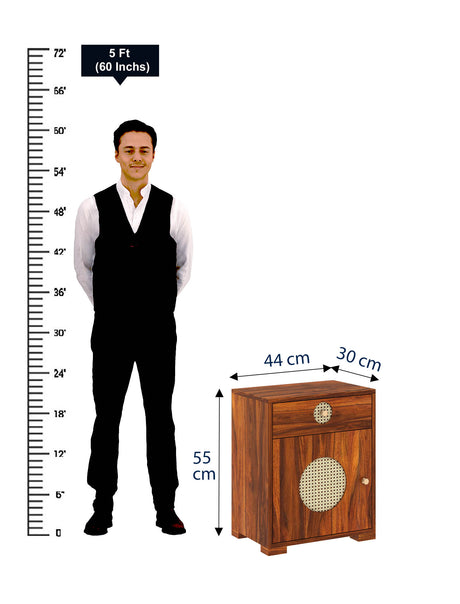 Cosmos Cane Solid Sheesham Wood Bedside With Drawer and Door Storage - 3 years Warranty