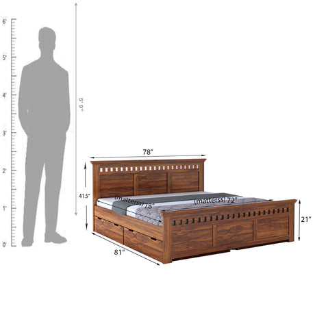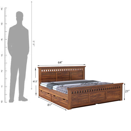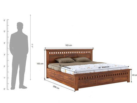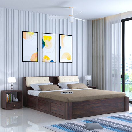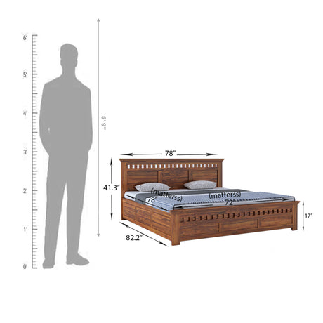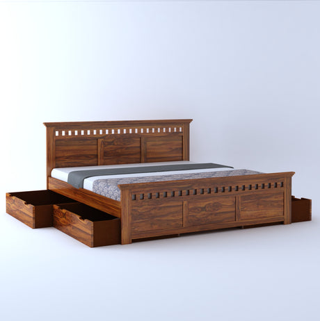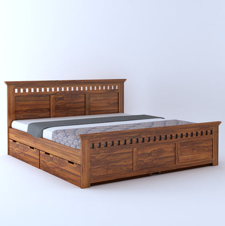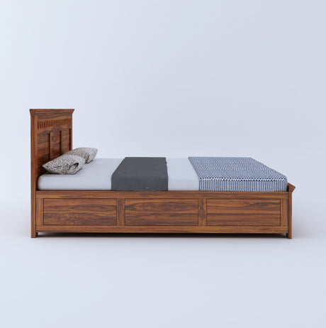 Raj Solid Sheesham Wood Full Box Storage Bed - 3 Years Warranty