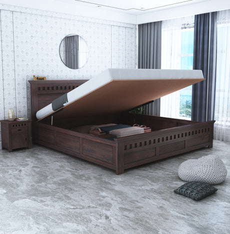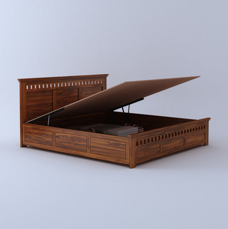 Armania Solid Sheesham Wood Hydraulic Storage Bed - 3 Years Warranty