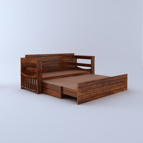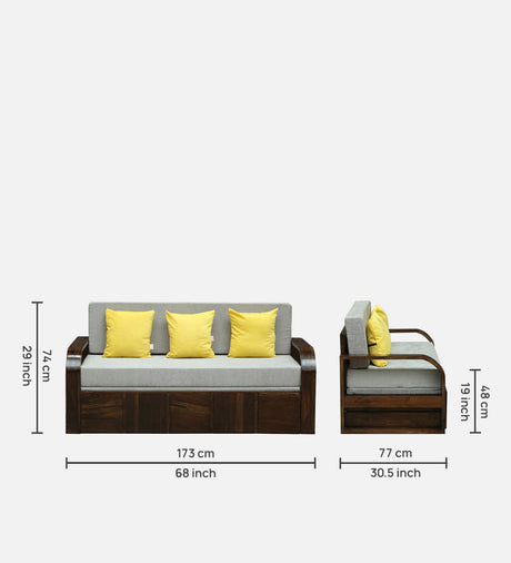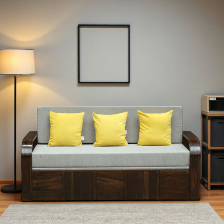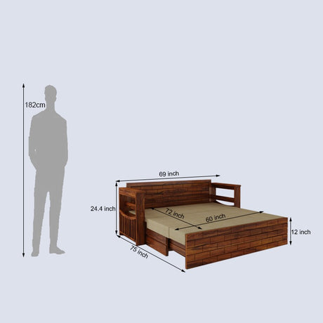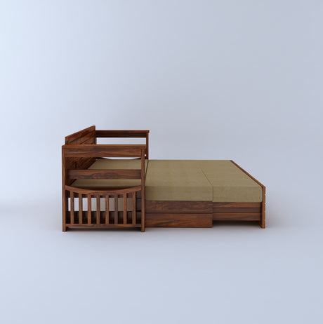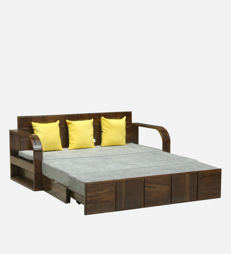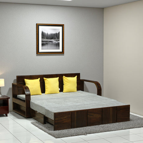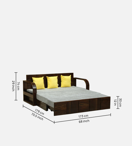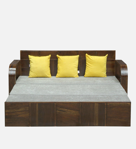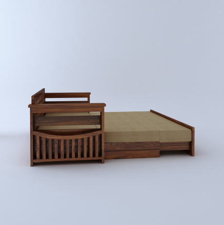 Scott Solid Sheesham Wood 3 Seater Sofa Cum Bed with Headboard Design - 3 Years Warranty