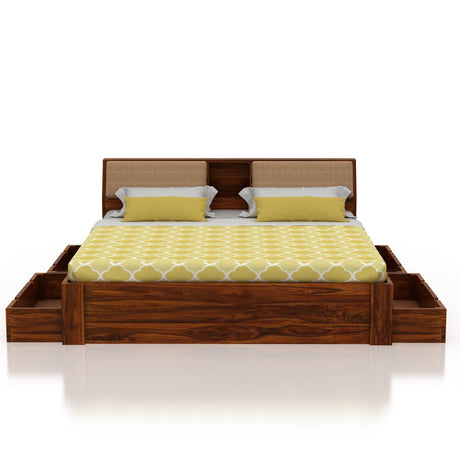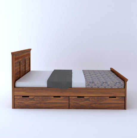 Armania Solid Sheesham Wood Bed With Four Drawer Storage - 3 Years Warranty