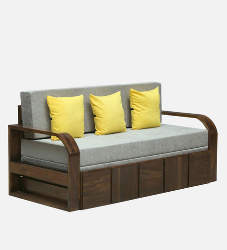 OSLO Solid Sheesham Wood 3 Seater Sofa Cum Bed With Headboard and Mini Storage - 3 Years Warranty