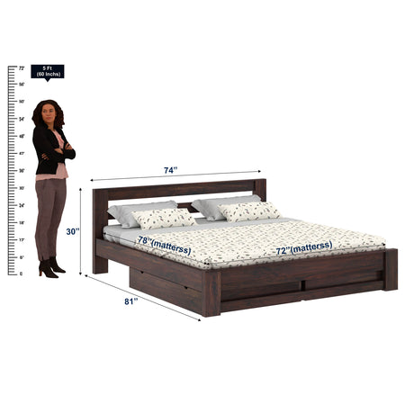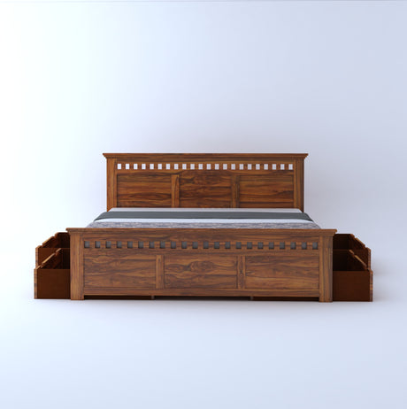 Foster Bed in Solid Sheesham Wood With Drawer Storage - 3 Years Warranty
