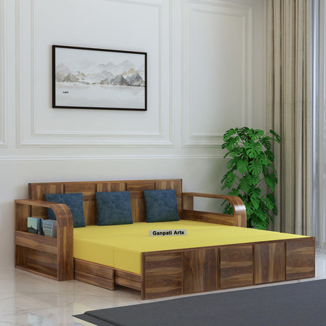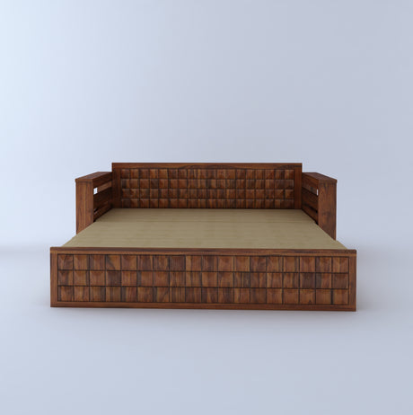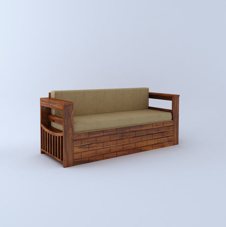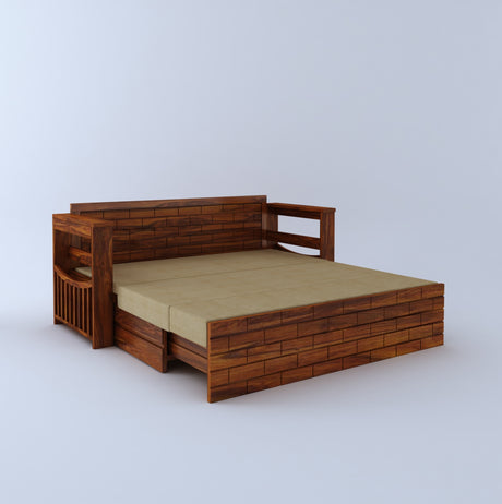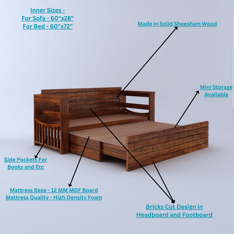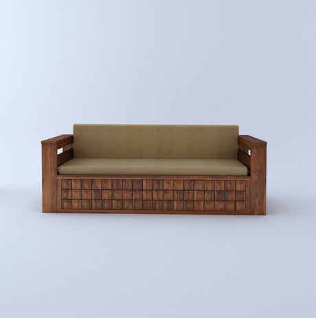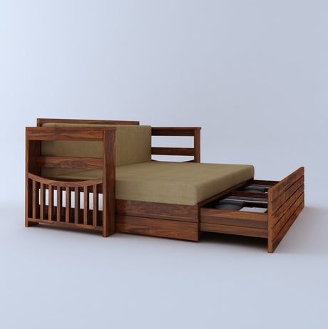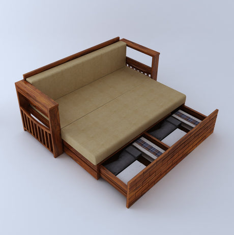 Italian Solid Sheesham Wood 3 Seater Sofa Cum Bed With Headboard and Mini Storage - 3 Year Warranty