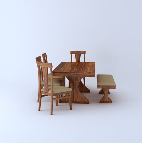 Maron Solid Sheesham Wood 6 Seater Dining Table Set - 3 Years Warranty