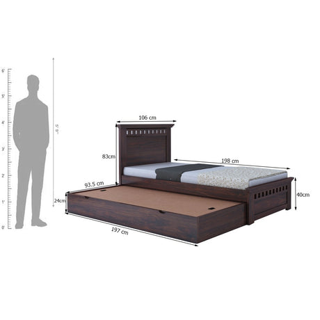 Armania Solid Sheesham Wood Single Trundle Bed With Storage - 3 Years Warranty
