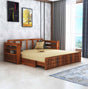 OSLO Solid Sheesham Wood 3 Seater Sofa Cum Bed With Mini Storage and Side Pockets - 3 Years Warranty
