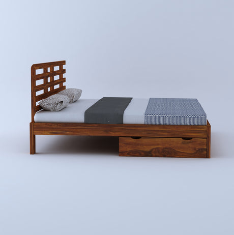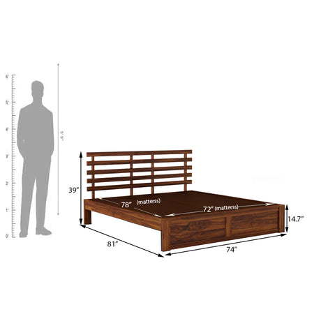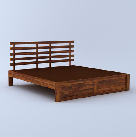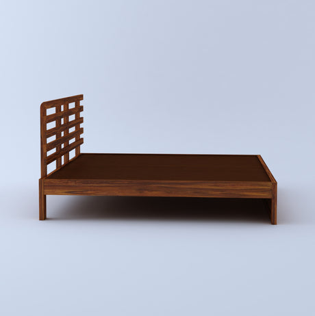 LATIN New Low Height Solid Sheesham Wood Bed Without Storage - 3 Years Warranty