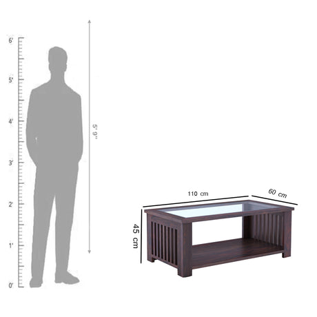 Maharaja Solid Sheesham Wood Coffee Table With Glass Top - 3 Years Warranty