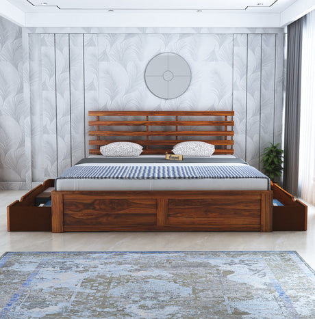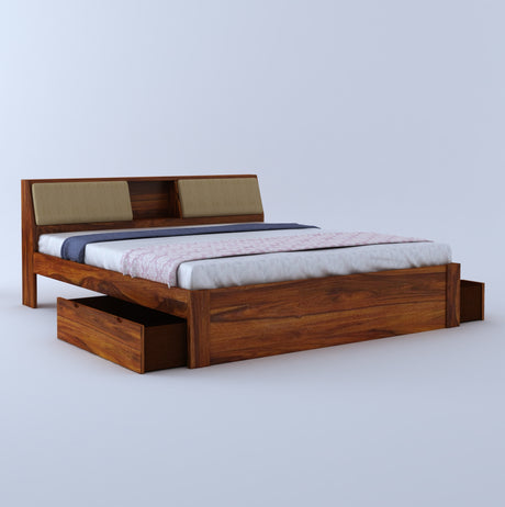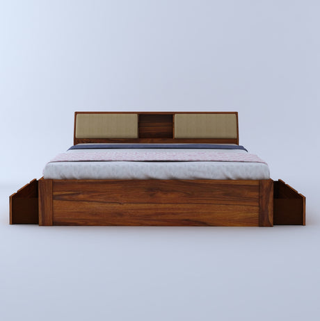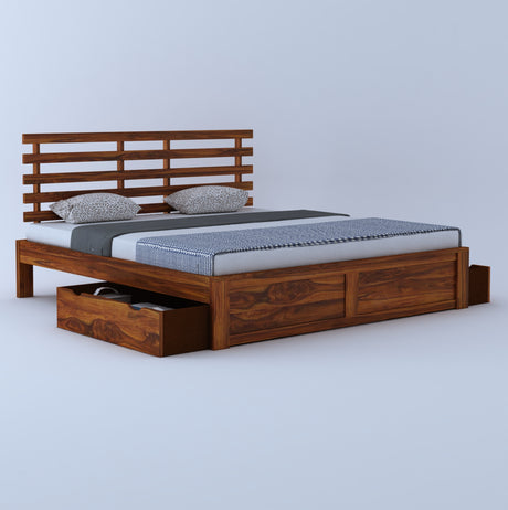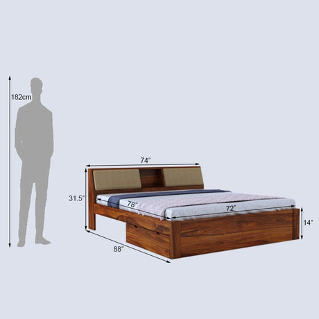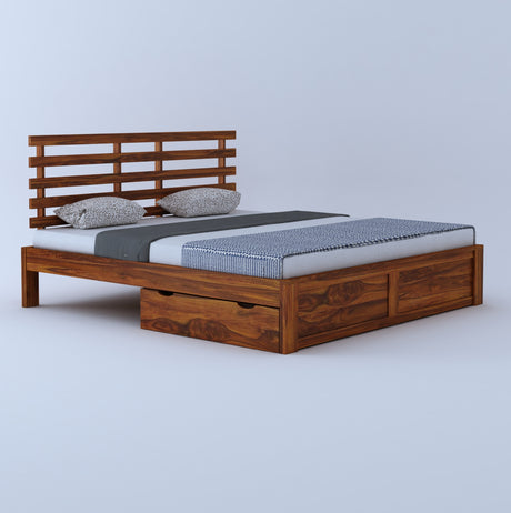 Scott Solid Sheesham Wood Bed With Box Storage - 3 Years Warranty