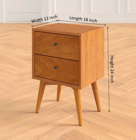 Lucia Solid Sheesham Wood Bedside Table With Two Drawer Storage - 3 Years Warranty