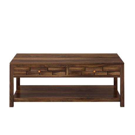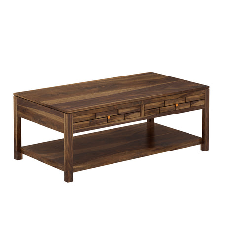 Italian Solid Sheesham Wood Coffee Table With Two Drawer - 3 Years Warranty