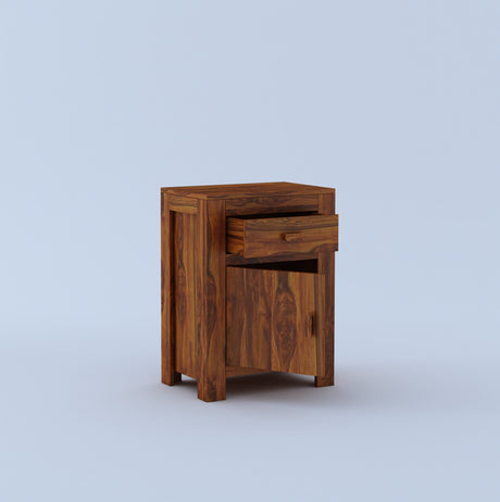 Akon Solid Sheesham Wood Bedside With Drawer and Door Storage - 3 Years Warranty