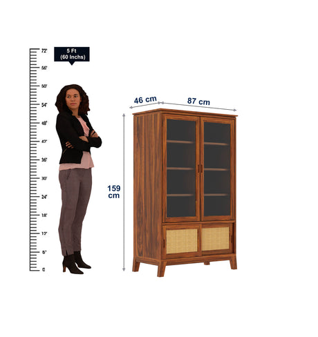 Cosmos CANE Sliding Door Display Unit in Solid Sheesham Wood - 3 Years Warranty