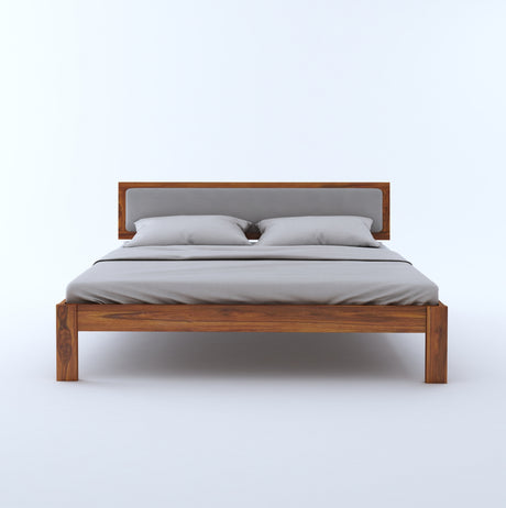 Euro Solid Sheesham Wood Bed With Upholstered Headboard - 3 Years Warranty