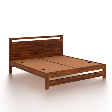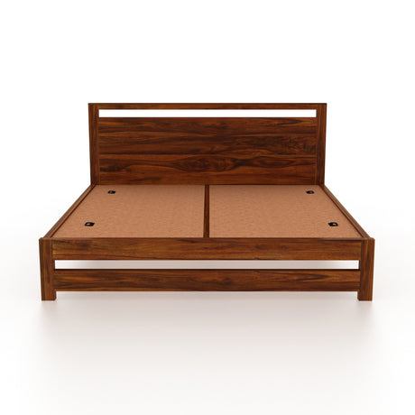 Scott Solid Sheesham Wood Bed With Box Storage Without Headboard - 3 years Warranty