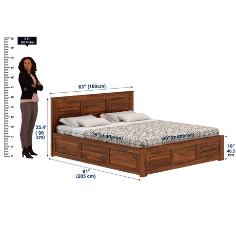 Swiss Solid Sheesham Wood Box Storage Bed - 3 years Warranty
