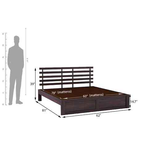 LATIN New Low Height Solid Sheesham Wood Bed Without Storage - 3 Years Warranty