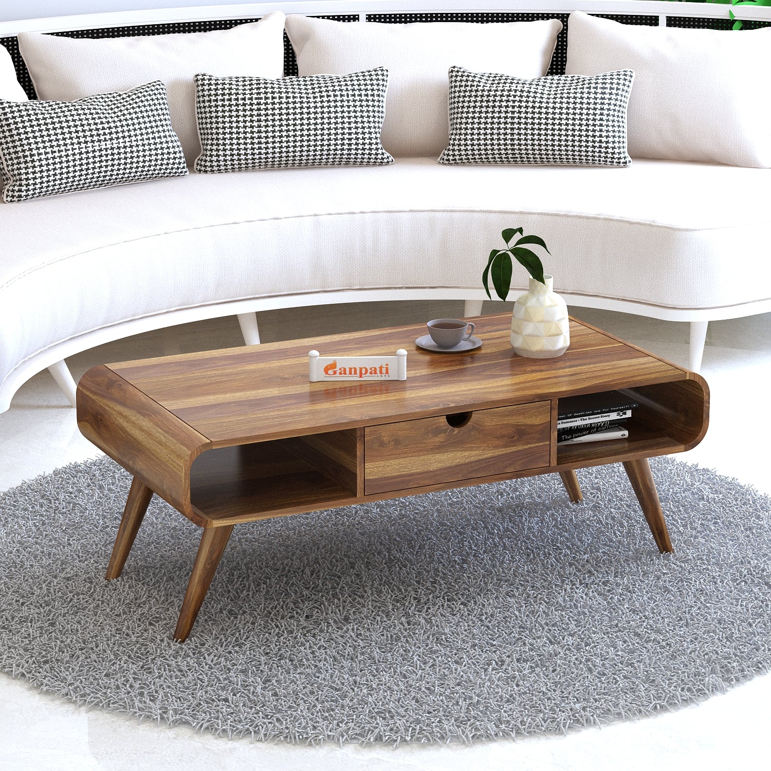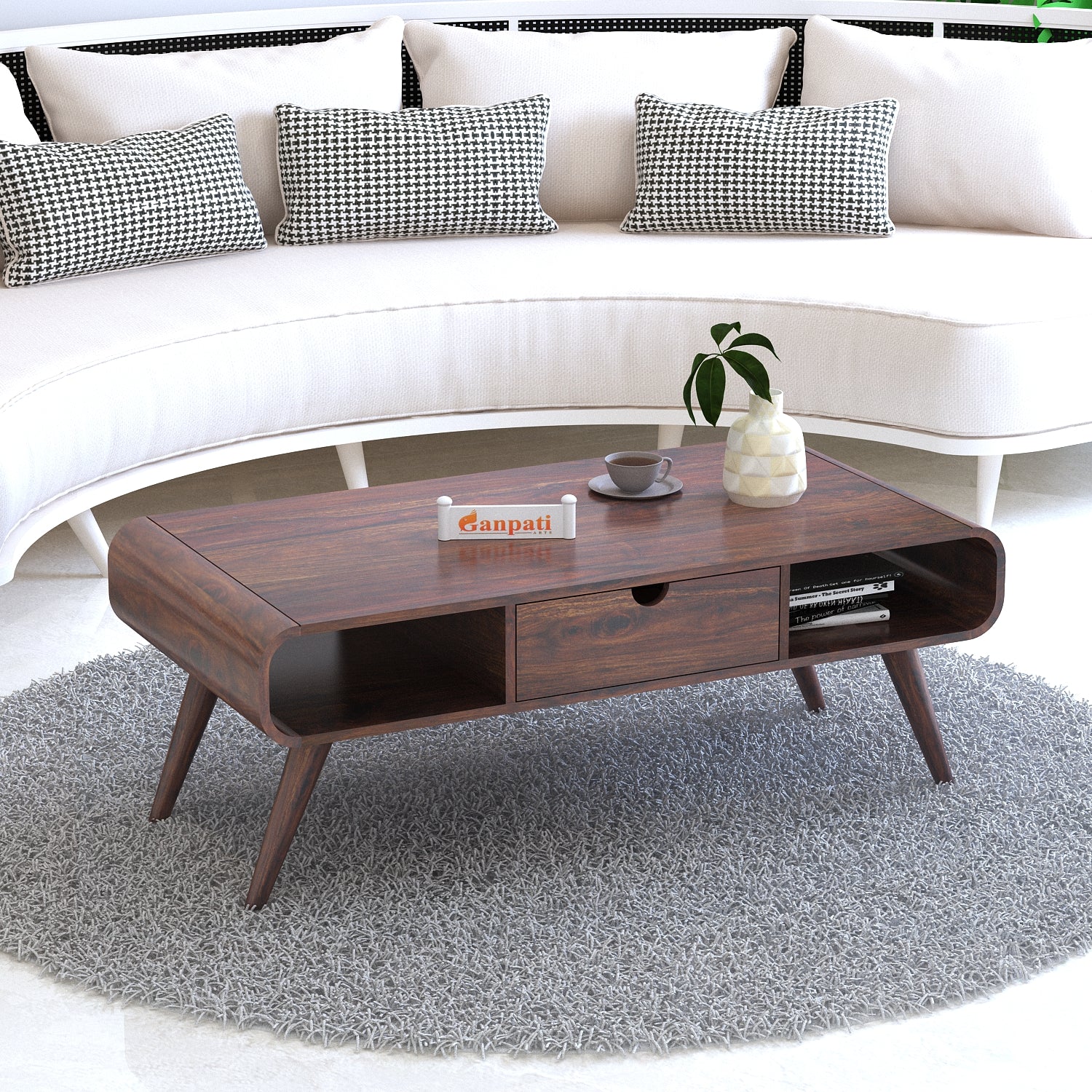 ELLEY Solid Sheesham Wood Coffee Table With One Drawer - 3 Years Warranty