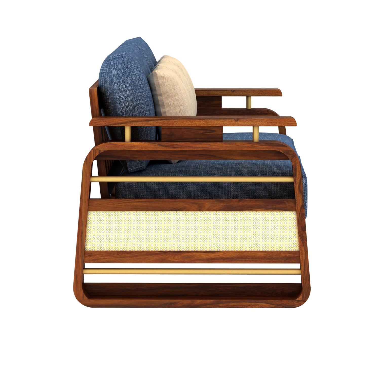 Edin Solid Sheesham Wood 3 Seater Sofa With Cane & Brass Detailing - 3 Year Warranty (LUXE EDITION)