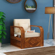 Wave Solid Sheesham Wood Single Seater Sofa With Side Pockets - 3 Years Warranty