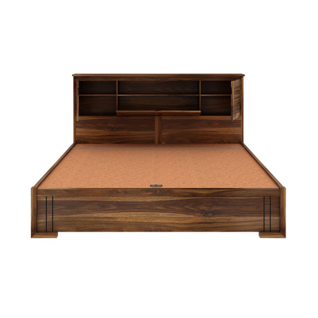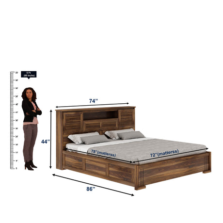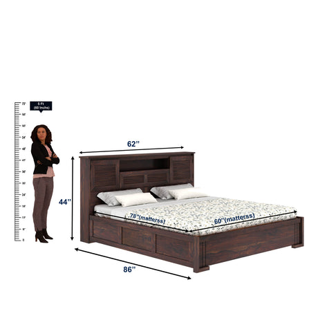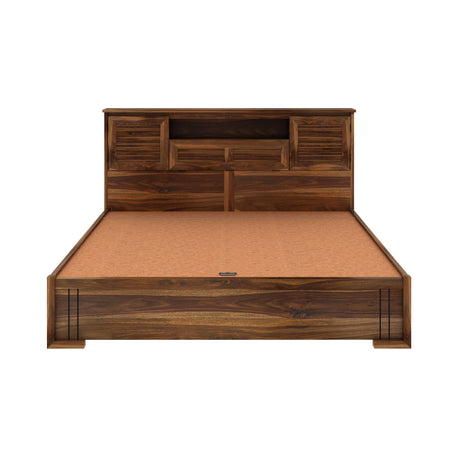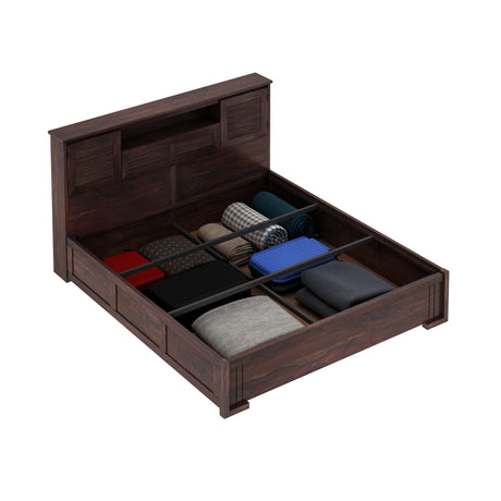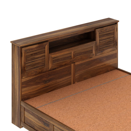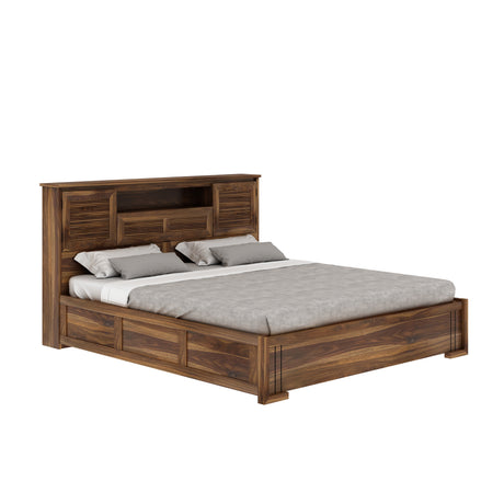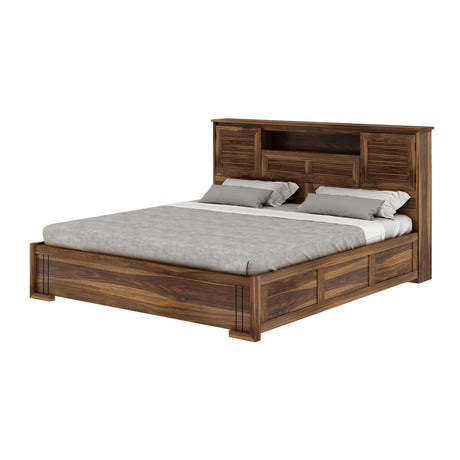 Maharaja Groove Solid Sheesham Wood Bed with Box and Headboard Storage - 3 years Warranty