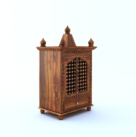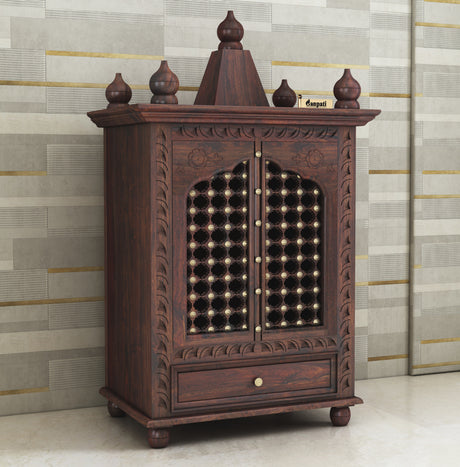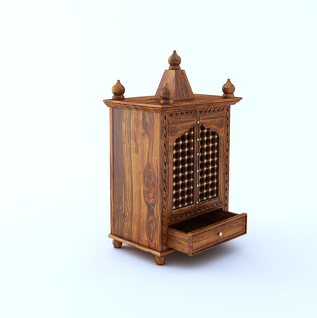 Vinayaka Solid Sheesham Wood Temple/Mandir With One Drawer Storage - 3 Years Warranty