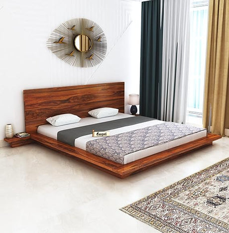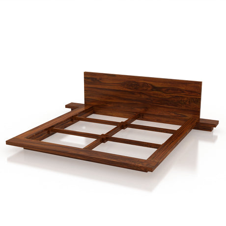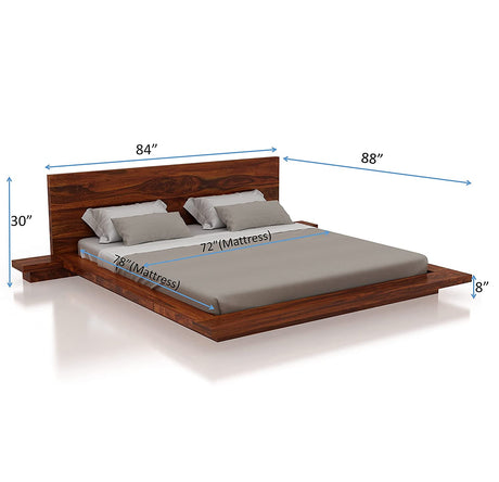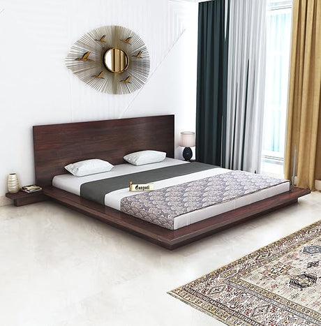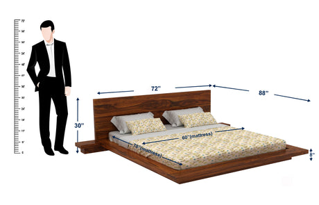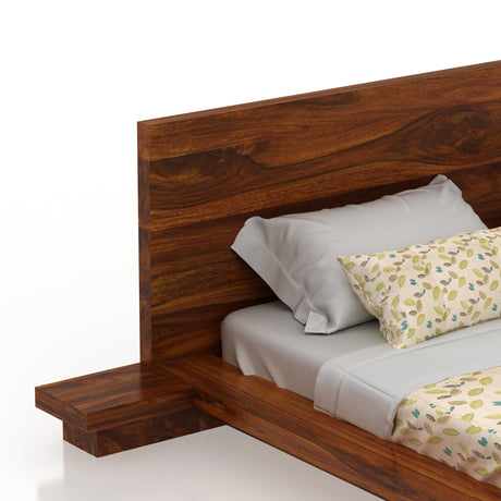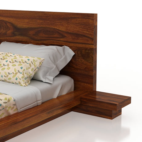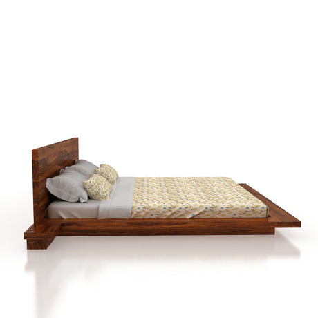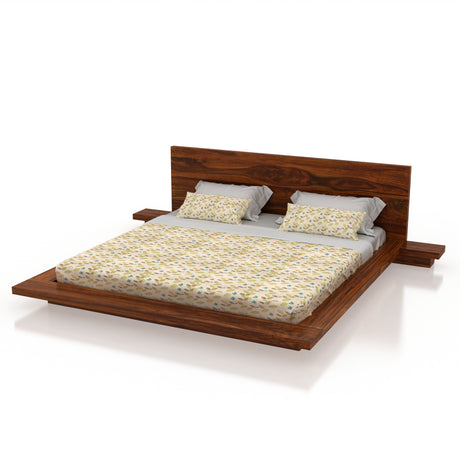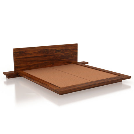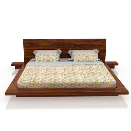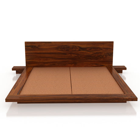 Lurid Solid Sheesham Wood Low Height Platform Bed with bedsides - 3 years Warranty