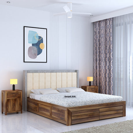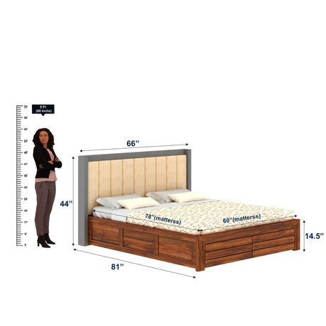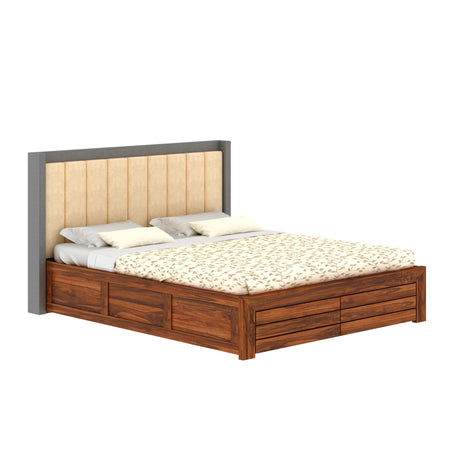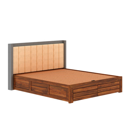 Scott Solid Sheesham Wood Bed With Box Storage Without Headboard - 3 years Warranty