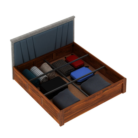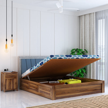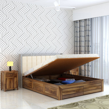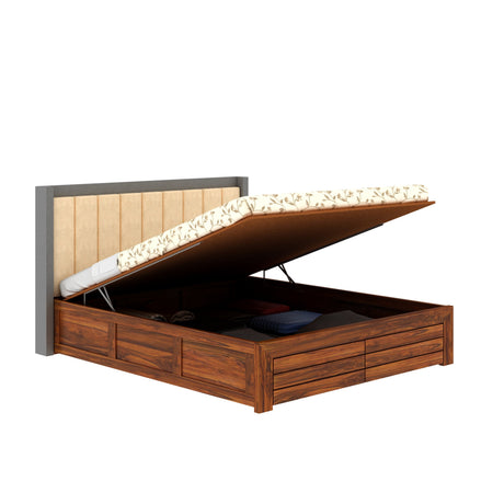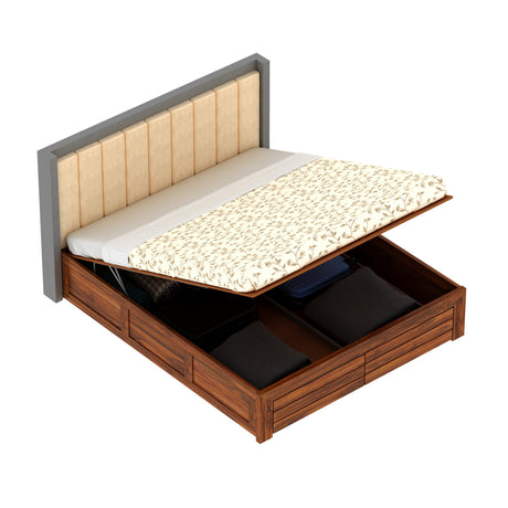 Scott Solid Sheesham Wood Bed With Hydraulic Storage Without Headboard - 3 years Warranty