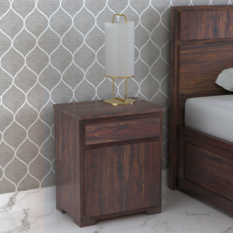 Scott Solid Sheesham Wood Bedside With Drawer and Door Storage - 3 years Warranty