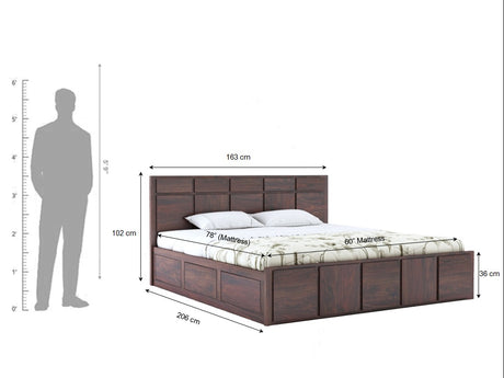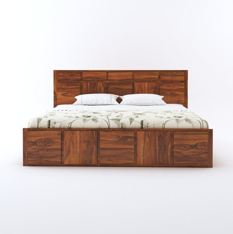 Scott Solid Sheesham Wood Bed With Box Storage - 3 Years Warranty
