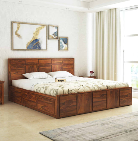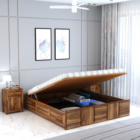 Scott Solid Sheesham Wood Bed With Hydraulic Storage - 3 Years Warranty