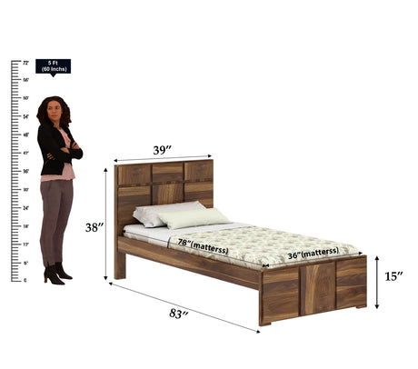 Scott Solid Sheesham Wood Single Bed - 3 years Warranty