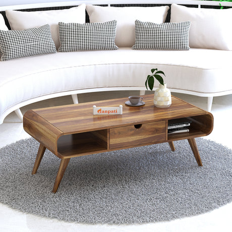 ELLEY Solid Sheesham Wood Coffee Table With One Drawer - 3 Years Warranty