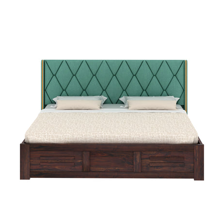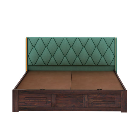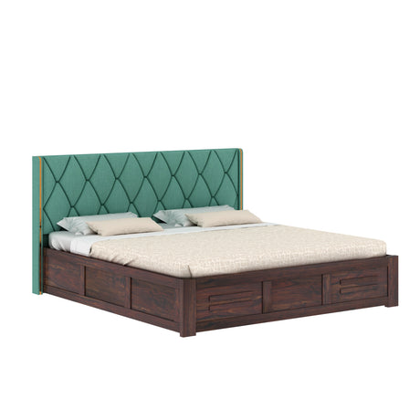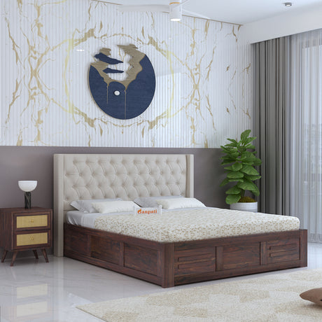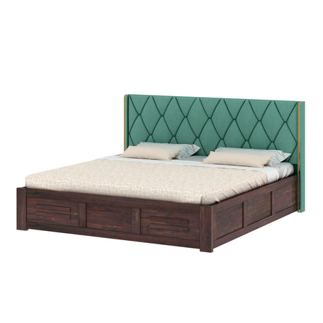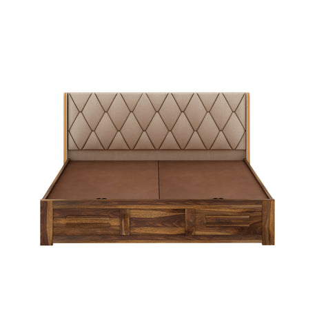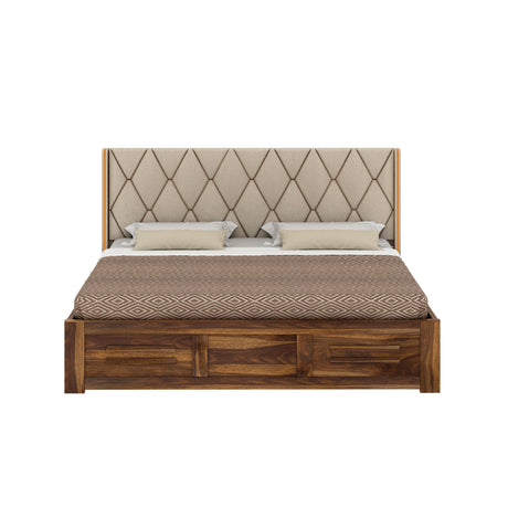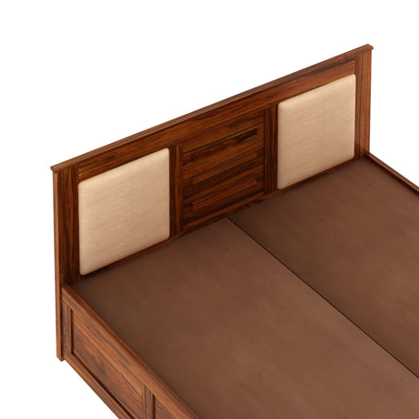 Swiss Solid Sheesham Wood Box Storage Bed With Upholstered Backrest - 3 years Warranty