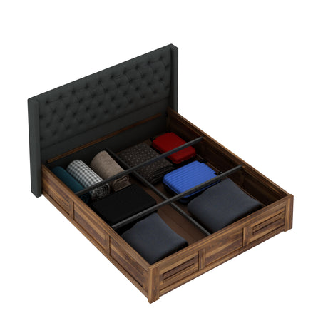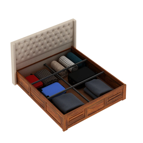 Swiss Solid Sheesham Wood Box Storage Bed - 3 years Warranty