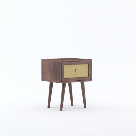 Syrus Solid Sheesham Wood One Drawer Bedside Cane - 3 Years Warranty