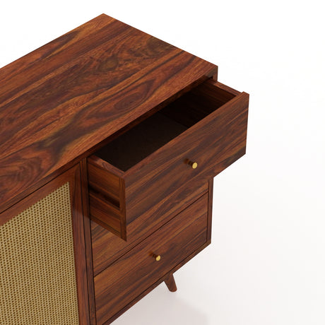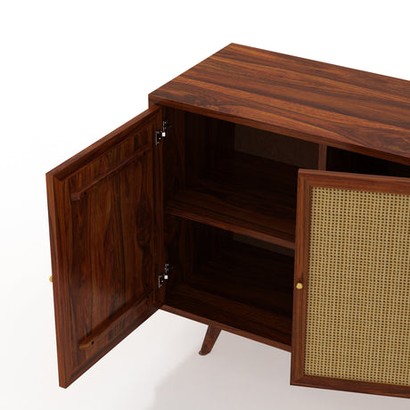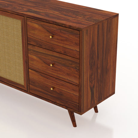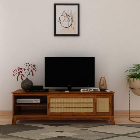 Syrus Solid Sheesham Wood TV Unit Cane - 3 Years Warranty