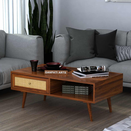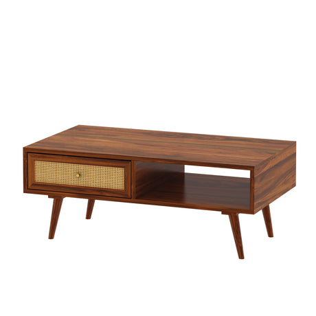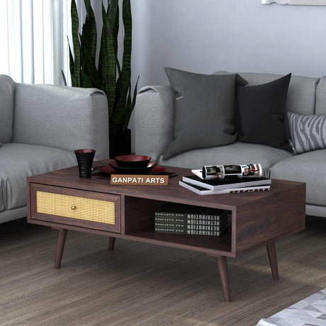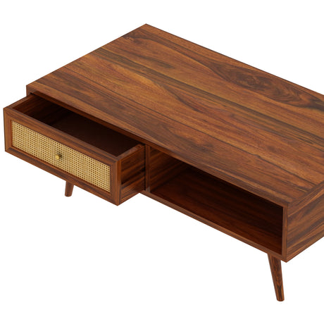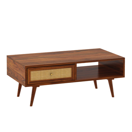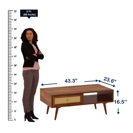 Syrus Solid Sheesham Wood Coffee Table With Drawer Storage - 3 Years Warranty
