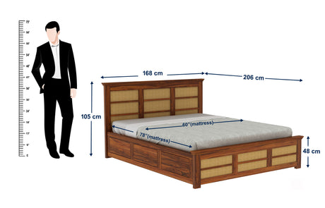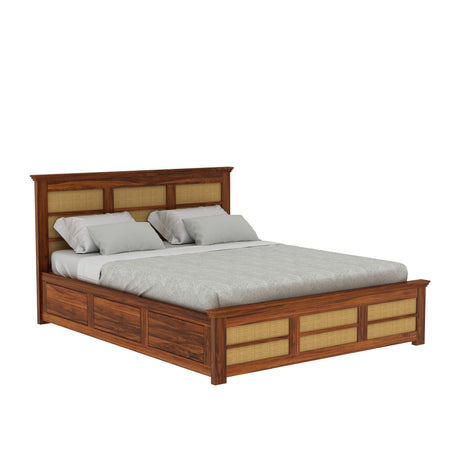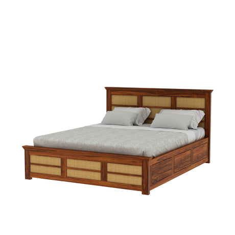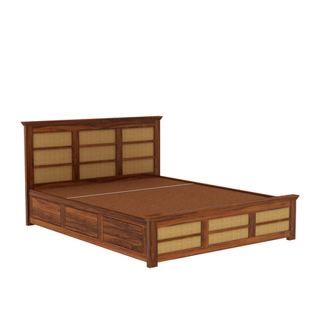 Syrus Solid Sheesham Wood Cane Bed With Box Storage Bed - 3 Years Warranty