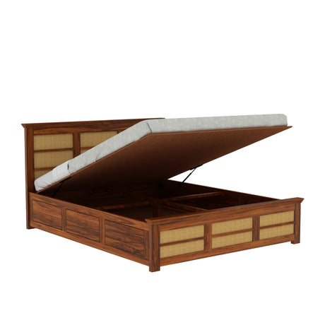 Syrus Solid Sheesham Wood Cane Bed With Hydraulic Storage Bed - 3 Years Warranty