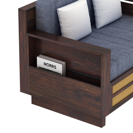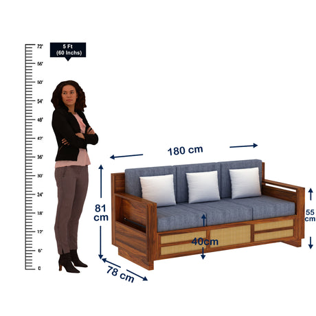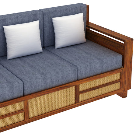 Syrus Solid Sheesham Wood 3 Seater Sofa With Side Pocket and Cane Design - 3 Year Warranty