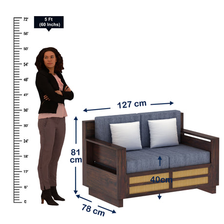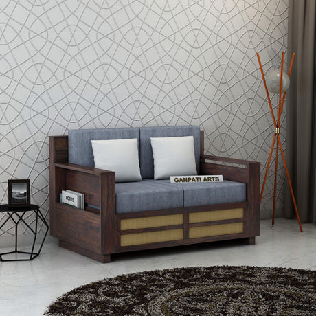 Syrus Solid Sheesham Wood 2 Seater Sofa With Side Pocket and Cane Design -3 Years Warranty