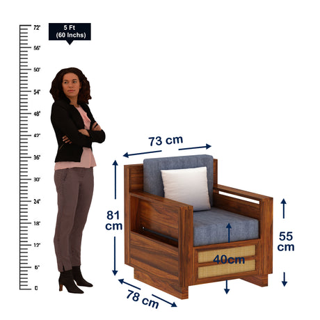 Syrus Solid Sheesham Wood Single Seater Sofa With Side Pocket and Cane Design - 3 Years Warranty