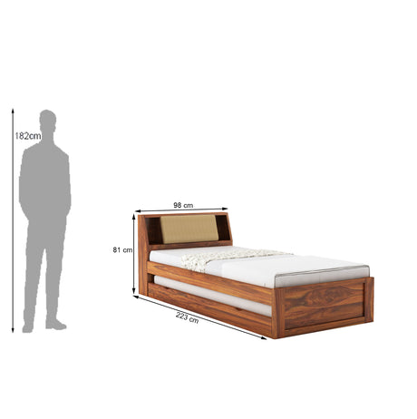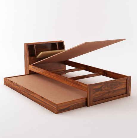 Simons Solid Sheesham Wood Single Trundle Bed - 3 Years Warranty