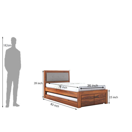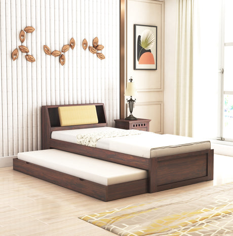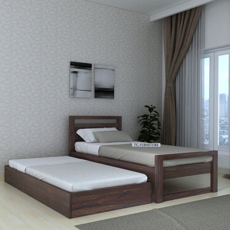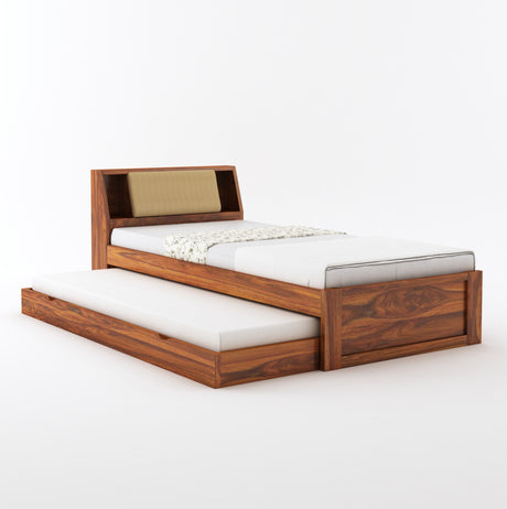 Scott Solid Sheesham Wood Single Trundle Bed Without Storage - 3 years Warranty