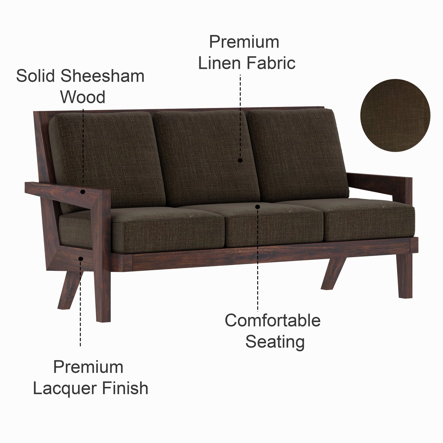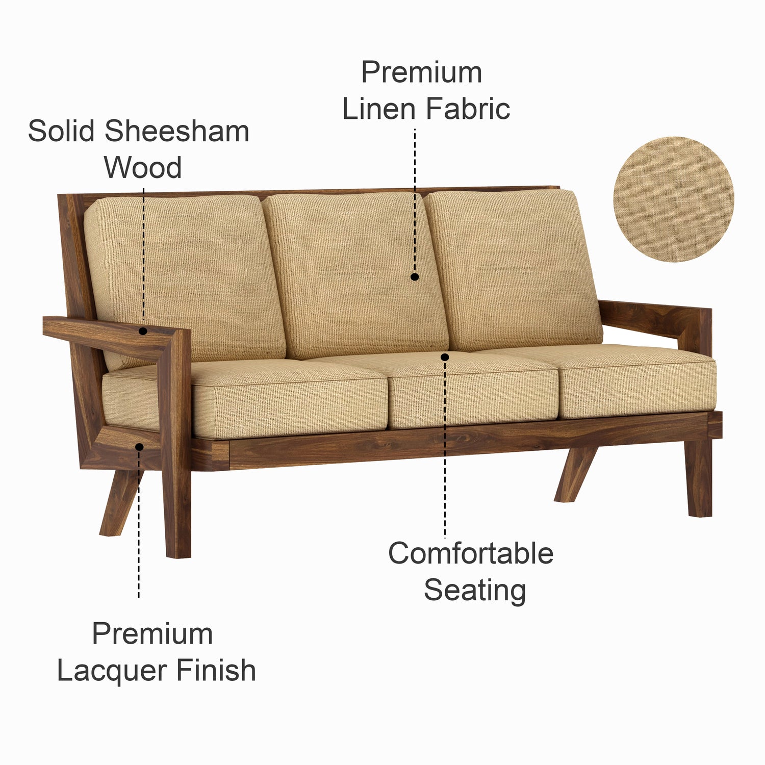 AURA Solid Sheesham Wood 3 Seater Sofa - 3 Year Warranty (LUXE EDITION) Experience timeless elegance with this premium 3-seater sofa crafted from solid Sheesham wood, renowned for its durability and rich grain patterns. The LUXE EDITION features comfortable linen fabric seats that combine breathability with refined aesthetics, perfect for contemporary and traditional interiors alike. Built to last, this sofa is backed by a comprehensive 3-year warranty, ensuring your investment remains protected. The sturdy hardwood frame provides exceptional stability and longevity, while the spacious seating accommodates your entire family with ease. An ideal choice for those seeking quality craftsmanship and enduring style.